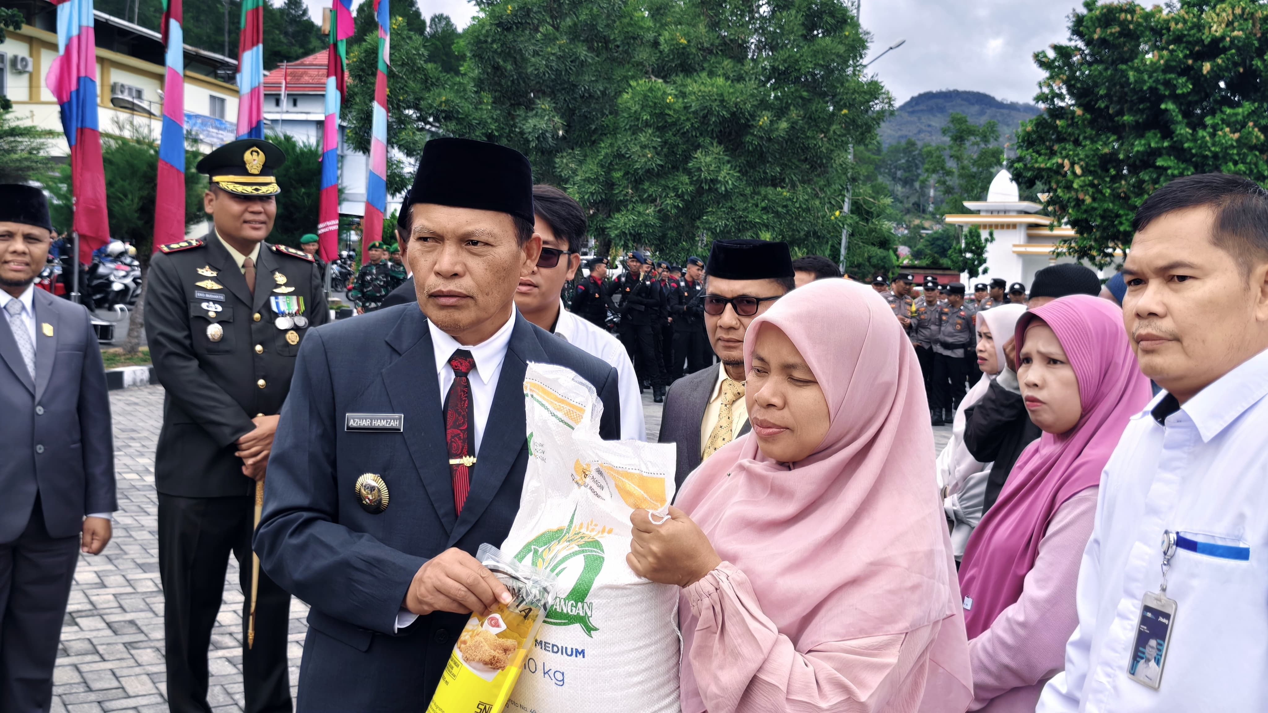 Penyerahan bantuan pangan ini dilakukan secara simbolis di Lapangan Kantor Wali Kota Sungai Penuh, bertepatan dengan peringatan Hari Pahlawan ke-80 pada Senin (10/11/2025). Momen tersebut menjadi bentuk kepedulian pemerintah daerah terhadap masyarakat sekaligus pengingat semangat perjuangan para pahlawan dalam membangun bangsa.